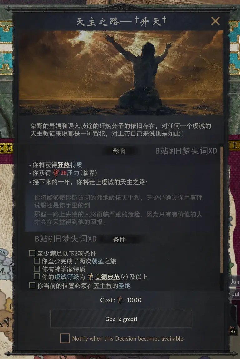而斗争与顺服,菲达因者两个教义也会触发该机制。我们目前在考虑把神贫誓愿、禁欲主义和托钵宣道者这三个教义纳入这个机制。