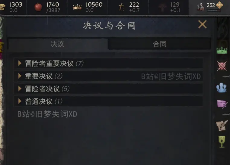 在上期开发日志中,有些网友询问我们如果不以成为领主的冒险者,会有什么目标引导吗?虽然扮演中世纪角色体验中世纪生活本来就没有明确的目标,但我们为了避免大家找不到方向,为此特地设计了一连串决议。而由于添加了许多新的决议,所以我们改进了决议界面,新增了分类折叠功能。