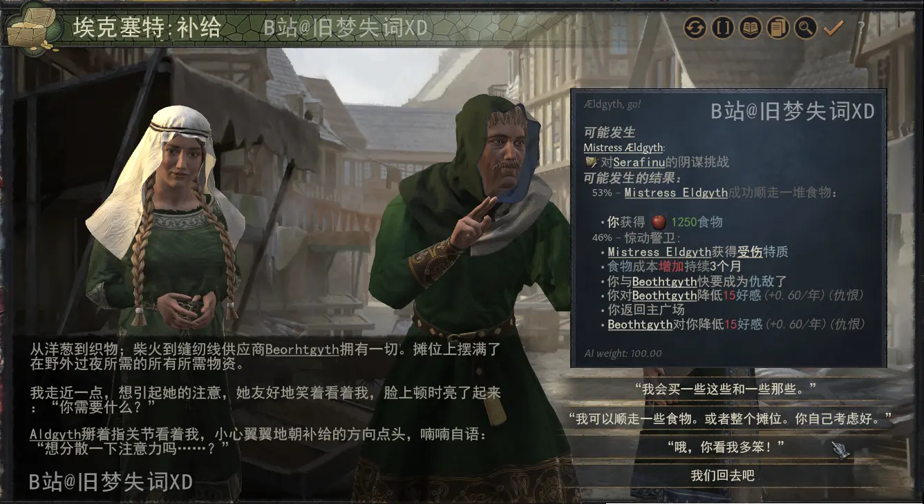 还有一些影响因素,如你某一项能力数值很高,或者你在访问城镇时有一位好伙伴相随,这些都可能影响事件的选项与其效果,你可以直接用金币买食物。或者用某一项高数值能力来获取食物,亦或者你的伙伴很节俭...