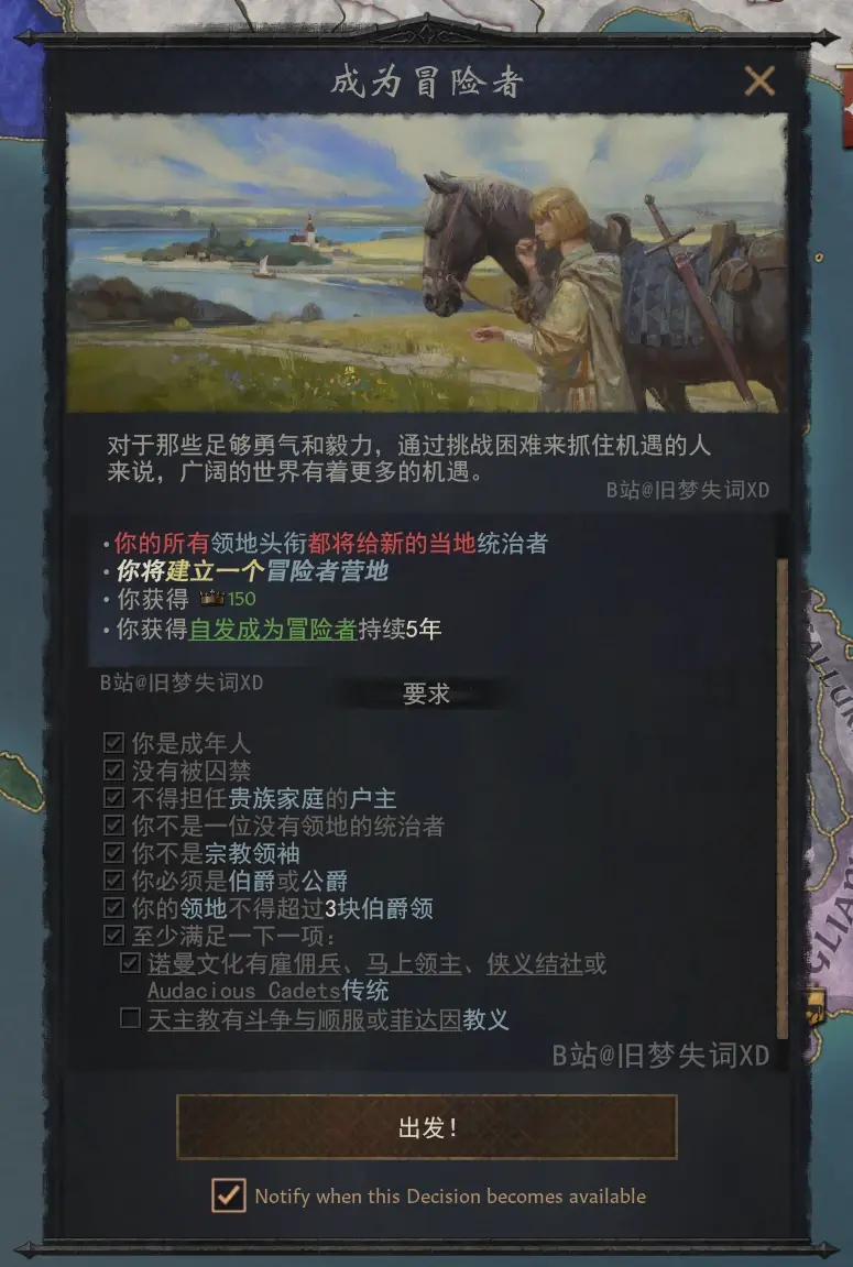 需要强调的是,成为冒险者的契机是正处于艰难的困境。他们失去了所有威望,甚至是3级威望等级。这是一种方案,以确保玩家不会像历史上的卡苏斯·贝利斯那样凭一己之力压倒整个神圣罗马帝国,而是以一种循序渐进,逐渐变好的状态。