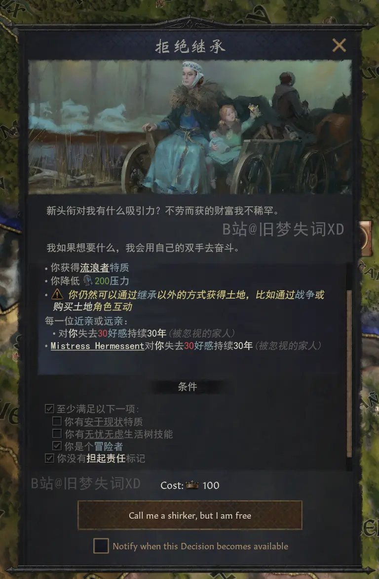 对于那些不想要继承领地的冒险者,我们设计了一个流浪者特质,当冒险者拒绝继承领地时获得。该特质就是你自愿放弃继承权的证明,不过冒险者还是可以通过征服或角色互动等方式重新获得这些领地。