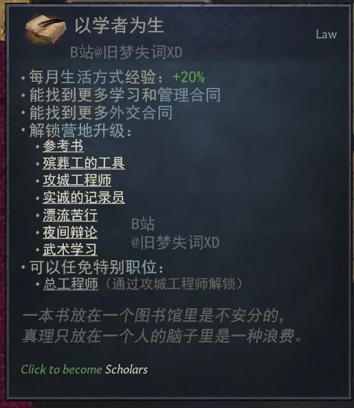 作为一名学者,你不太可能赢得战斗,但你可能会是统治者的王佐之才,随着时间的推移,你很可能会为自己谋得一块属于自己的领地。