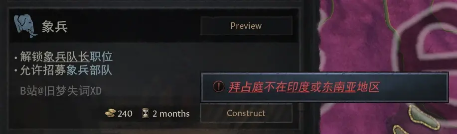 当你在营地建造象兵建筑时,或者从赞助者那里得到象兵兵种的援助,才能招募象兵。而象兵建筑锁定印度或东南亚地区。