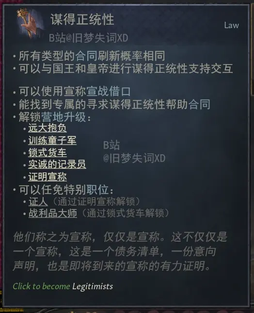 谋得正统性冒险者可以发动宣称战争,不过前提条件是有头衔宣称,所以这也算得上是一种限制。由于冒险者没有主教,所以不能制造宣称。