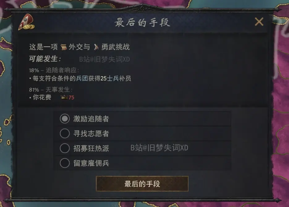 如果实在是没资源了,冒险者可以选择用“最后的手段”机制来招募低质量部队。