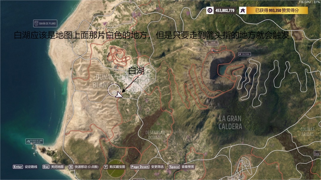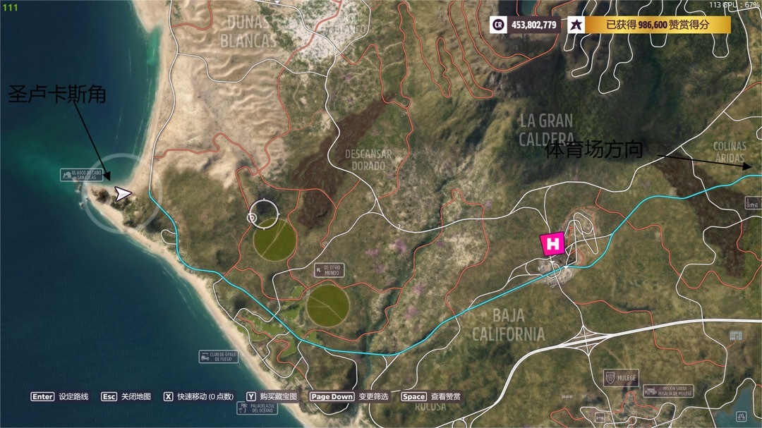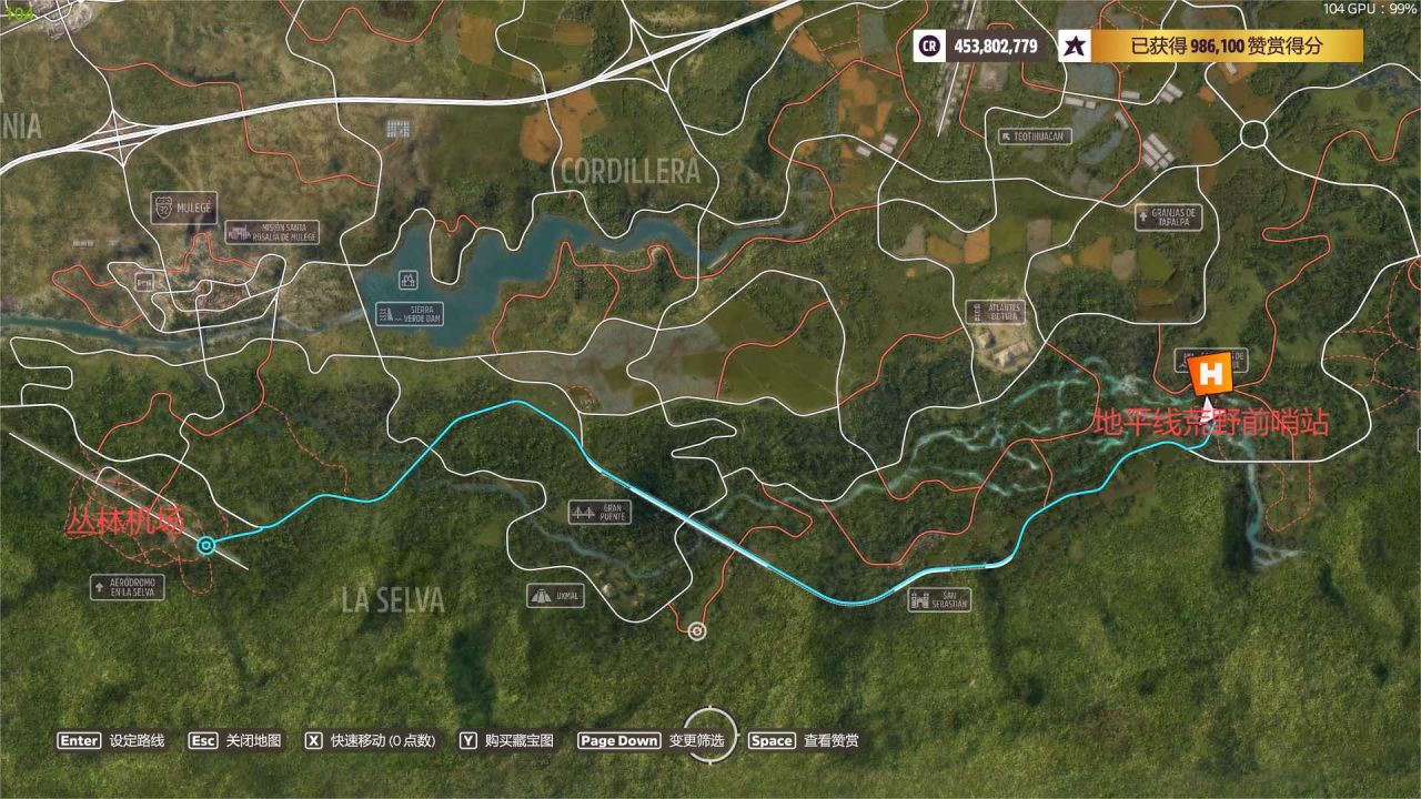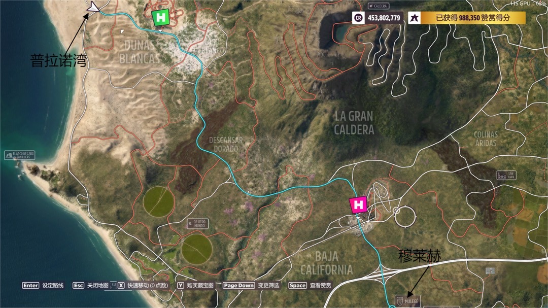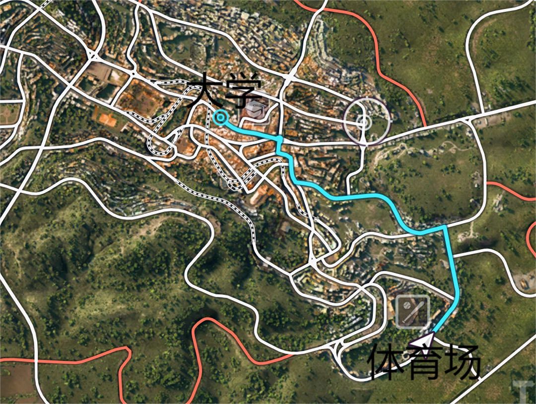 兩個點的位置和路線,我都標在圖中了,我使用的車輛是蘭博基尼第六元素FE