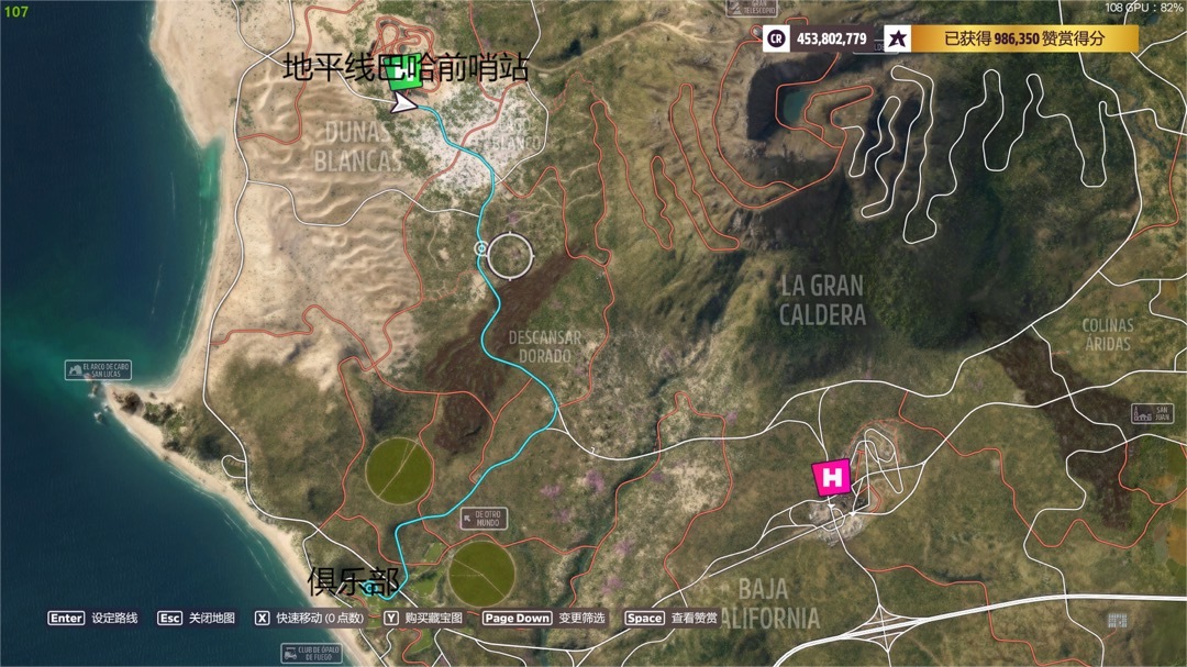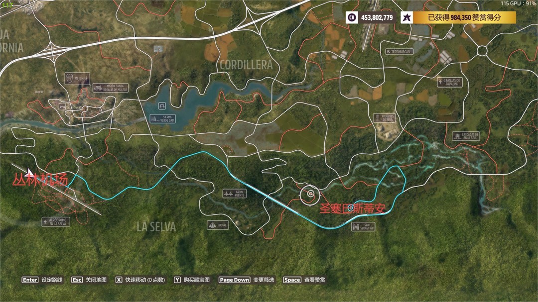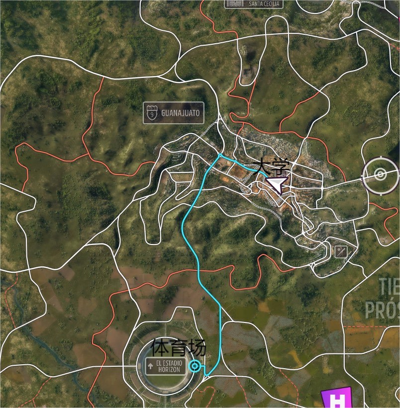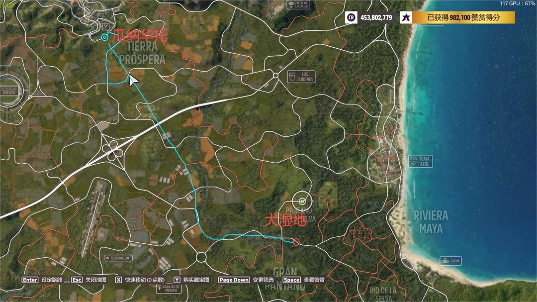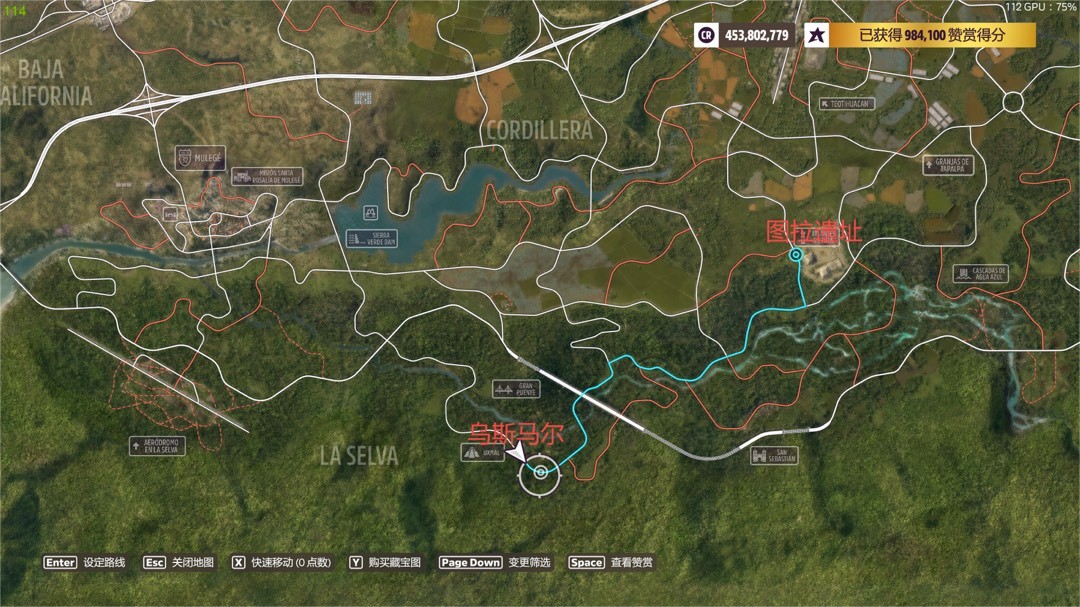 兩個點的位置和路線,我都標在圖中了,我使用的車輛是蘭博基尼第六元素FE