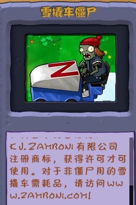 雪橇车僵尸的灵感来源是赞博尼除冰车