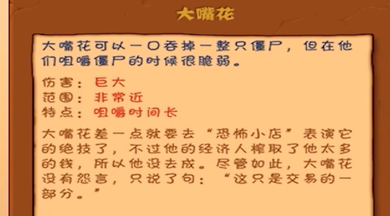 当我们打开大嘴花的图鉴时,会提到它差一点就要去“恐怖小店”了。