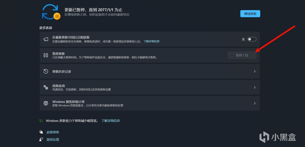 现在你的Windows要等到2077年1月1号才会自动更新了。