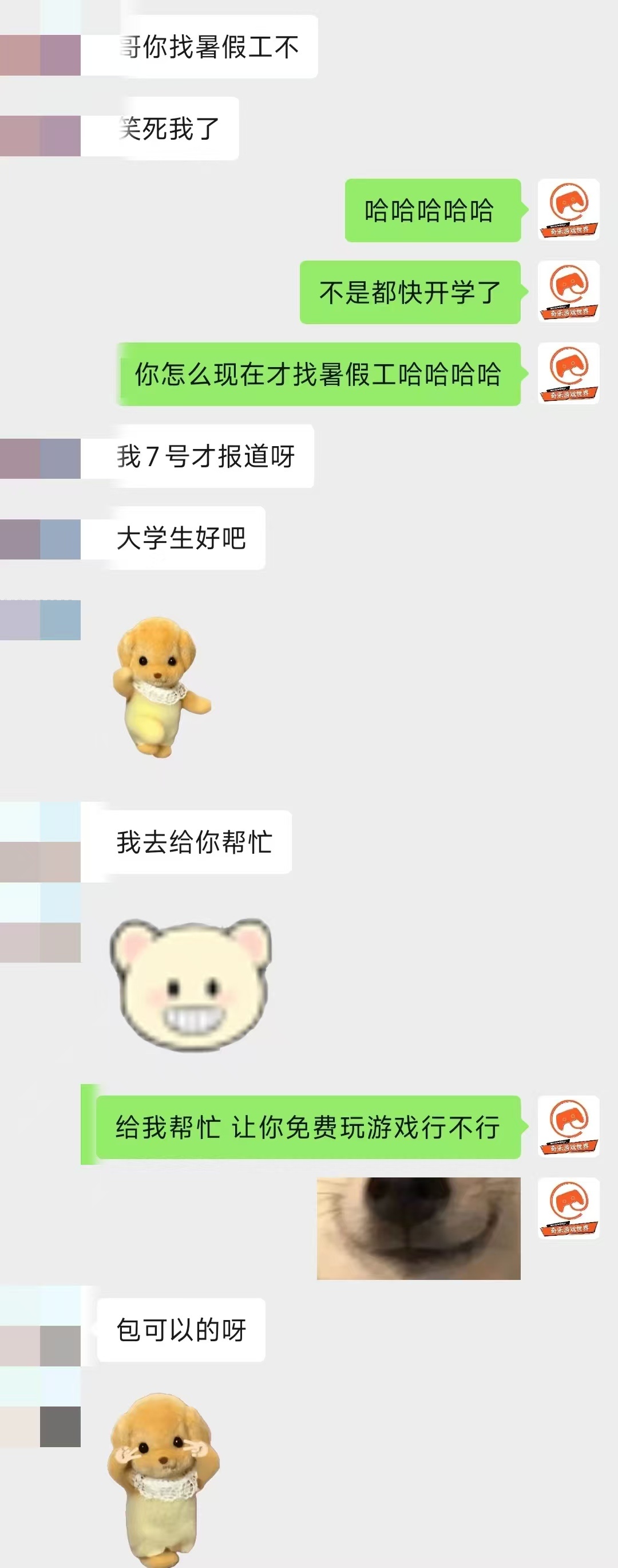時間到了後,我習慣性的加了小姐姐的微信,開始打掃包間並消毒。重點來了,小姐姐的項鍊掉到了包間的地上,我瞅了一眼應該也不便宜,估計兩三百的樣子。然後我以最快的速度給小姐姐發了微信讓她來拿項鍊,沒想到聊了一會,小姐姐問我招不招暑假工,我仔細想了想目前的經營現狀,跟她說:“給我幫忙,讓你免費玩遊戲”。她竟然很爽快的答應了。事情到這裏就結束了,後續大概是我倆有又簡單的聊了下店裏需要做什麼事情等等。