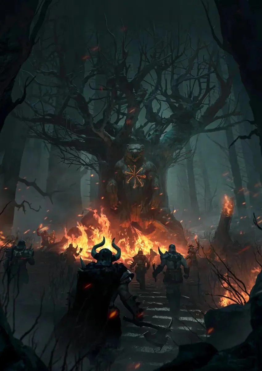 维特克拔出他的剑,策马进攻,因为他的信仰是真诚的,扎维萨和他的牧师们也不是作秀。他们的战斗祈祷让火焰穿过猎人的剑,让他们的心充满了杀戮的欲望,尽管燃烧的蜘蛛的恶臭让他们的胃翻江倒海。达兹之光烧尽了雨水和黑暗,暴露了那些在树林里偷偷摸摸行动的东西。