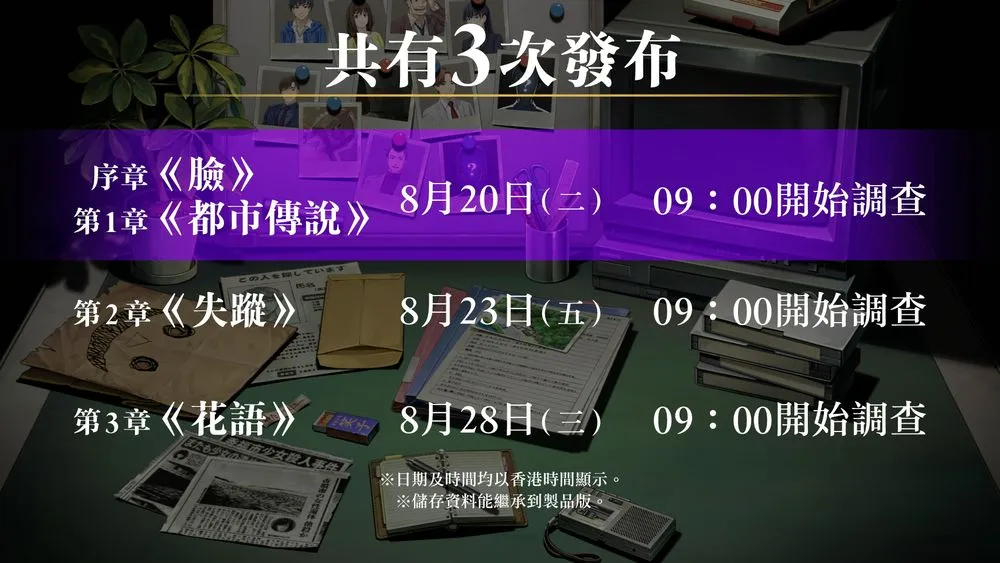 遊戲試玩版「事前聯合調查」於8月20日開始依次發佈三個章節試玩。
