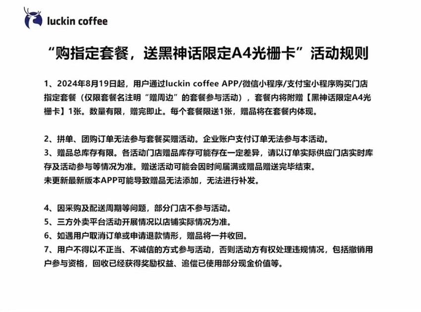瑞幸和《黑神話》的聯名飲品“騰雲美式”已經正式登場啦,需要購買特定套餐才能獲得(或者店內點兩杯問問咖啡師能不能贈送)