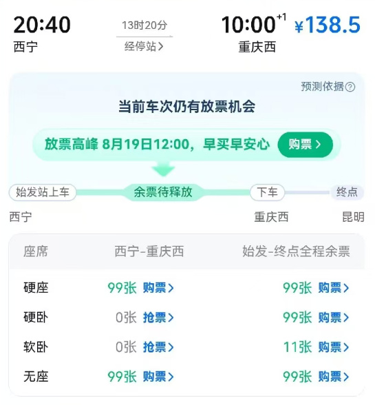 不建议盒友“不抢到也能走”。买短乘长很有可能无法补票,然后被乘务员赶下车。
