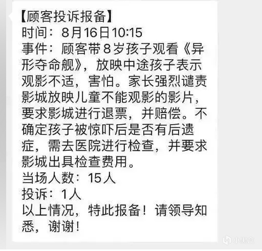 就在最近,有家电影院的“顾客投诉报备信息”显示