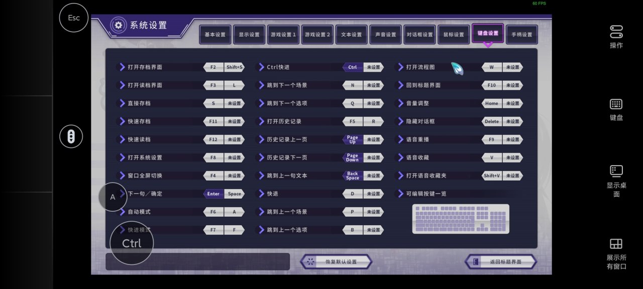 也可以根據遊戲的操作需求自定義,如過劇情時設置Ctrl來長按跳過無聊的h場景,或按A鍵開啓自動模式解放雙手。
