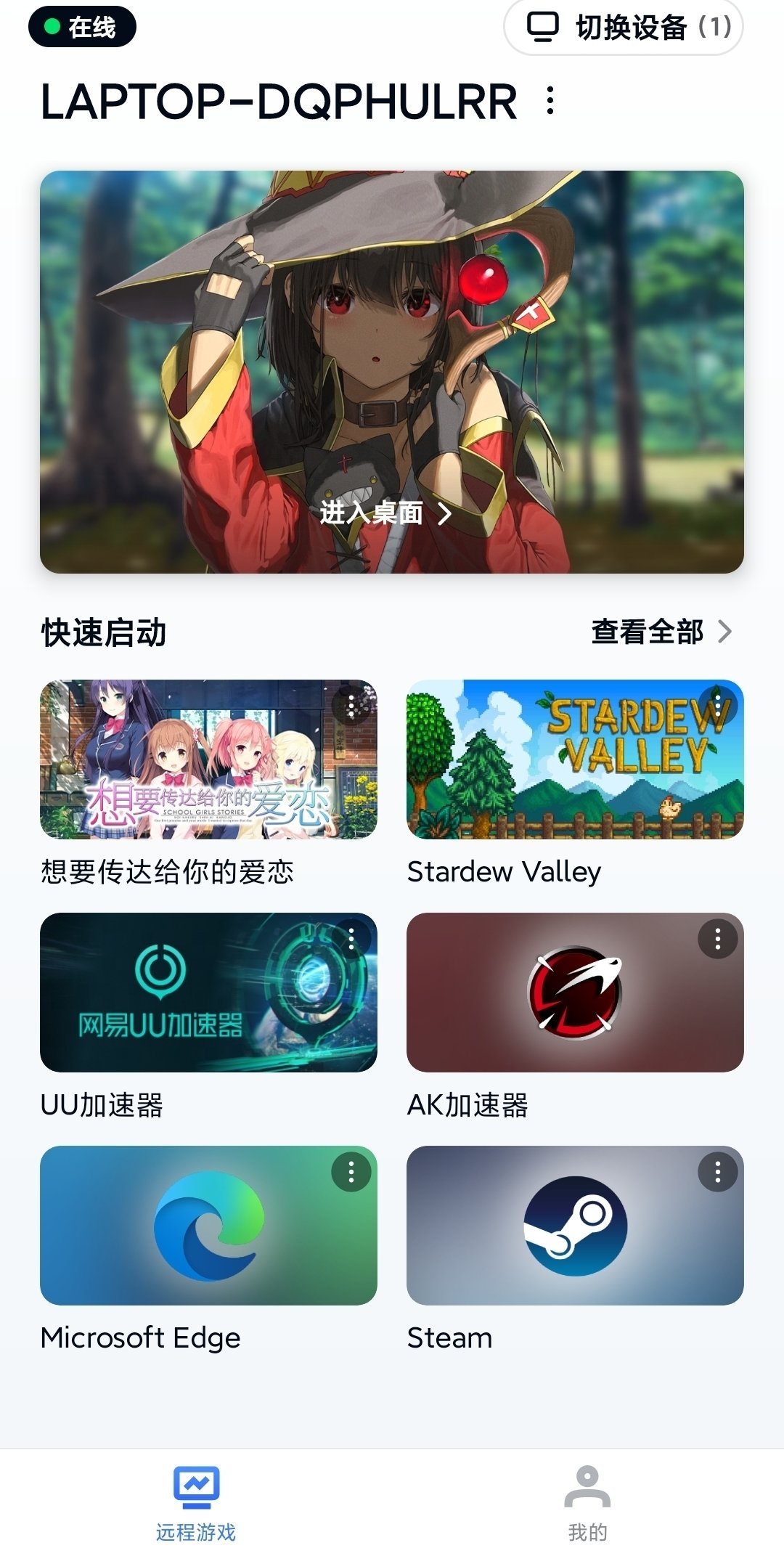 先在手機和電腦上下載gameviewer,然後登錄同個賬號,隨後出現可控設備,點擊進入桌面即可開始遠控。