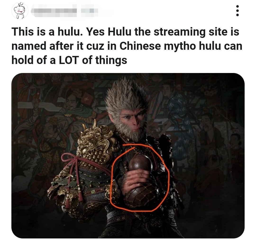 - 這是葫蘆。是的,Hulu這個流媒體網站就是以它命名的,因爲在中國神話中,Hulu可以容納很多東西