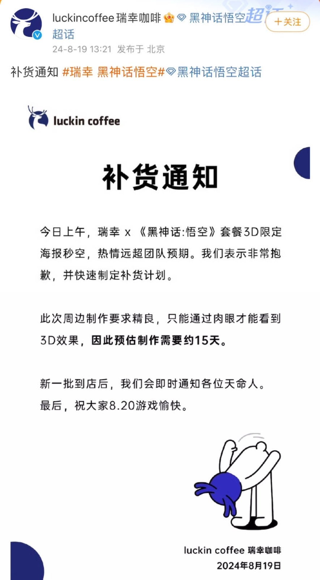 不過在最後,瑞幸直接宣佈會再次進行補貨。大家完全可以再等等!