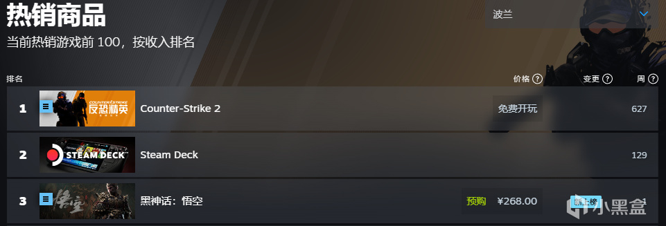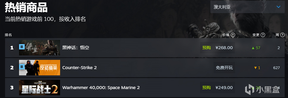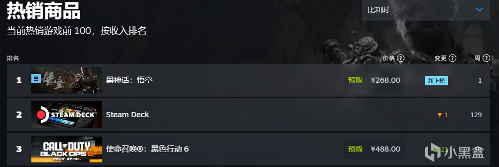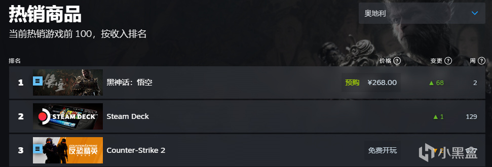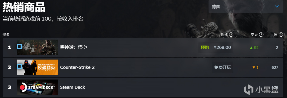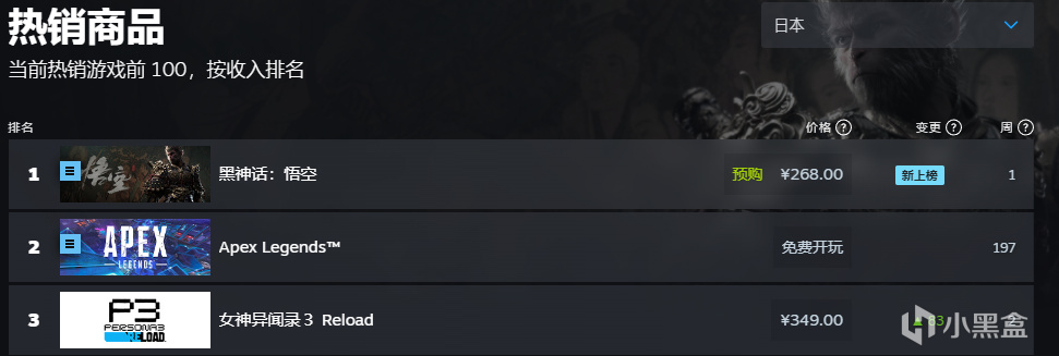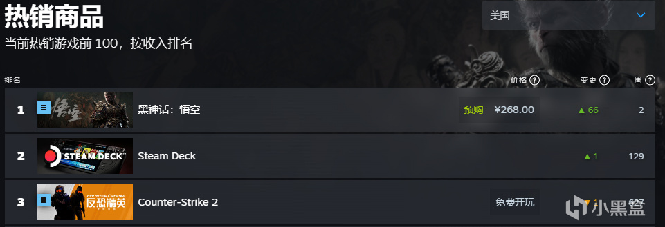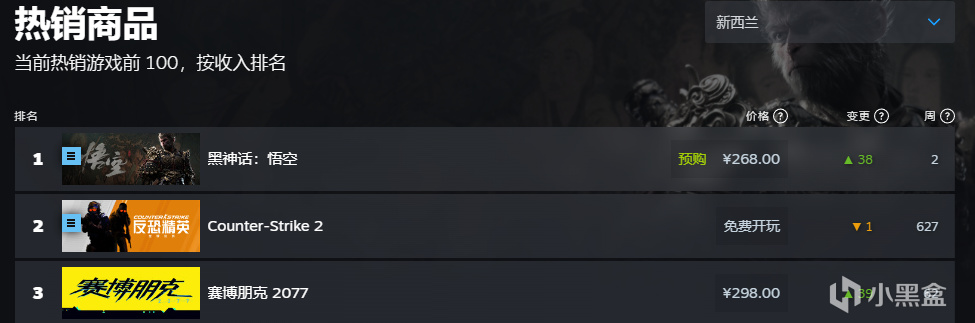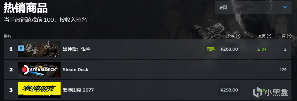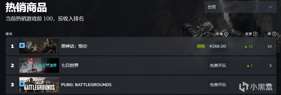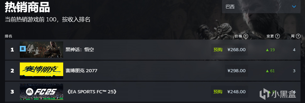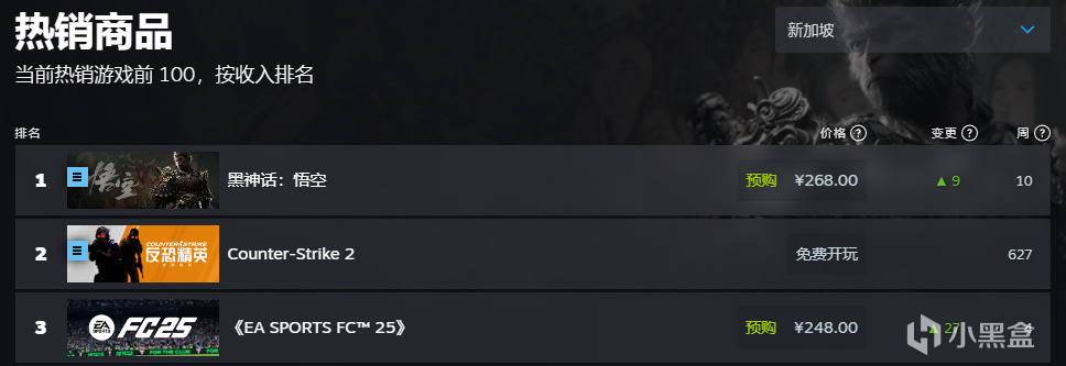 在Steam的統計數據裏共計30個地區,黑神話均登上前三熱銷排行榜。