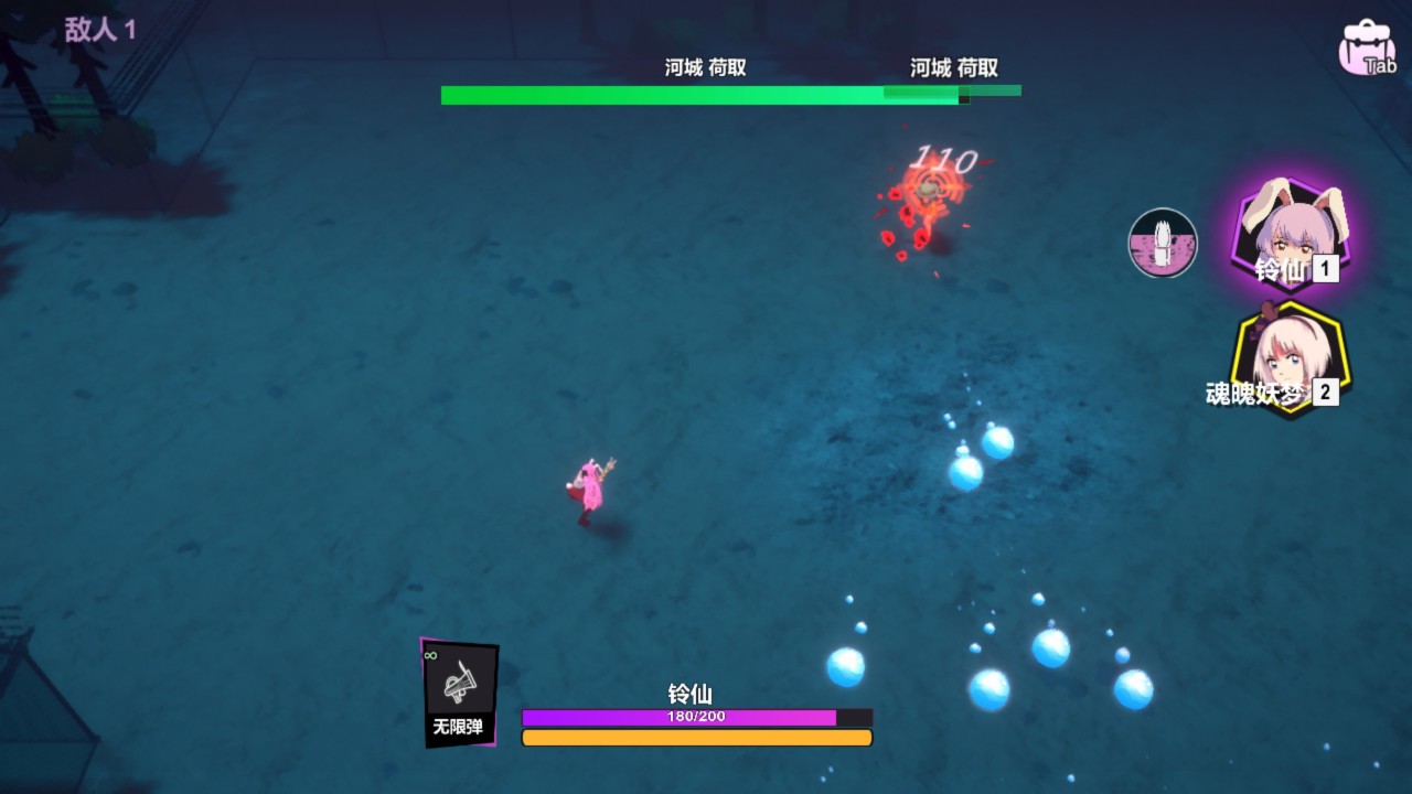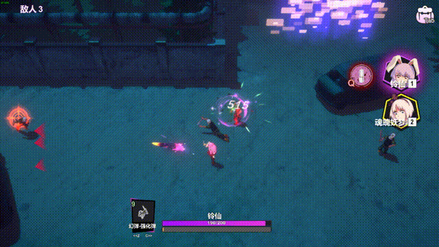 例如,铃仙作为月战老步兵,最称手的武器肯定是手枪与步枪。默认手持是无限弹枪械,可按下Z或C键切换强化弹的枪械,或是使用铃仙在战场上曾使用过的95式改良版步枪来射击敌人。