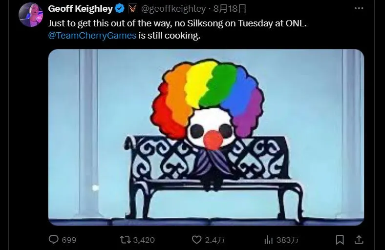 科隆遊戲展開幕夜主持人Geoff Keighley確認,開幕夜節目沒有絲之歌。