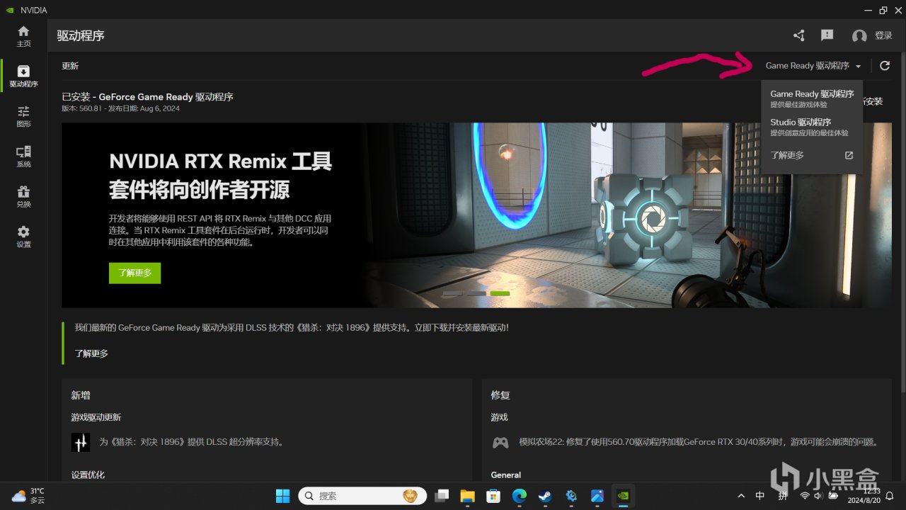 3.選擇Game Ready並更新。