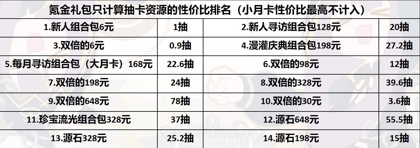 按照抽卡性價比排序。請謹慎氪金不要上頭