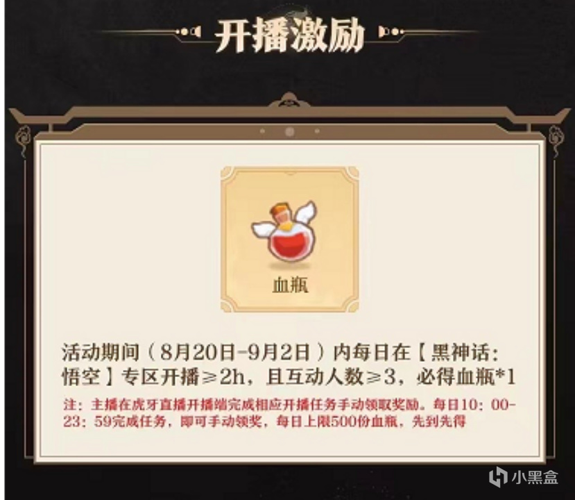 活動4:來虎牙開播黑神話,開播必得六六大順血瓶!