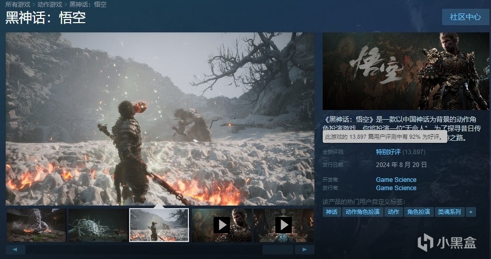 目前,《黑神话:悟空》在Steam 上共收获13,897篇评价,其中92%好评,整体评价为特别好评,游戏整体表现不错。