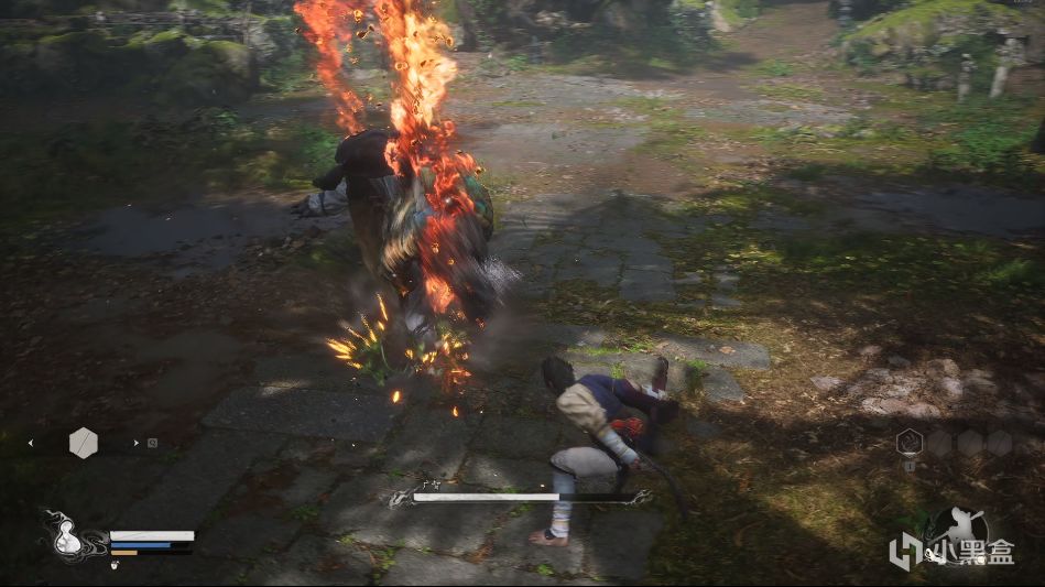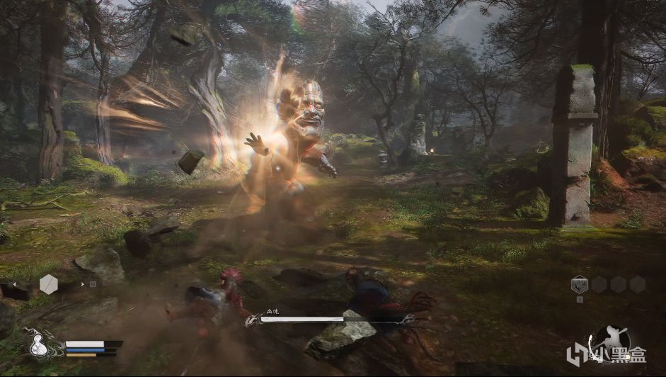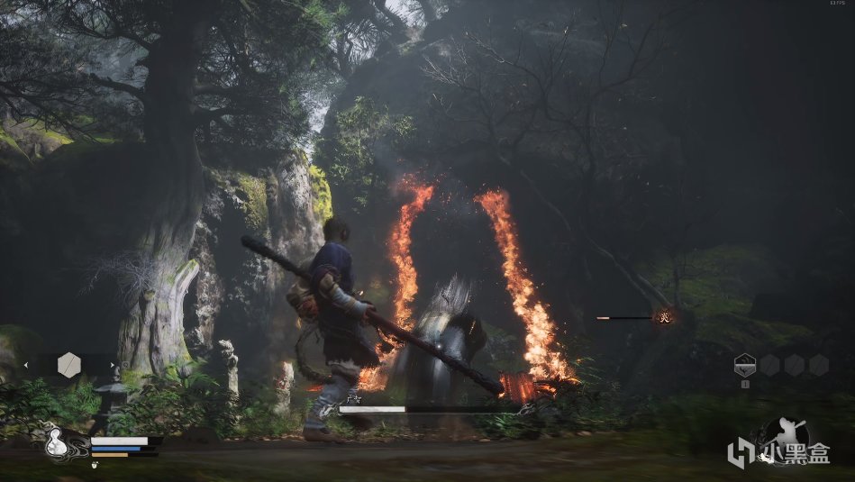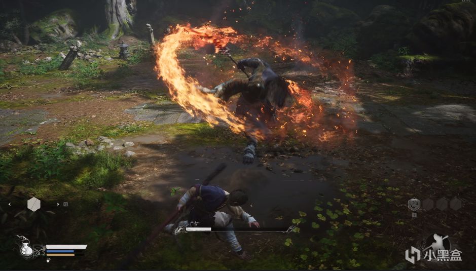 實戰經驗:這裏最好用到剛剛學會的72變之妖怪擬態進行應對,用廣智火焰刀打出一定的傷害後,配合定身術共同殺之。