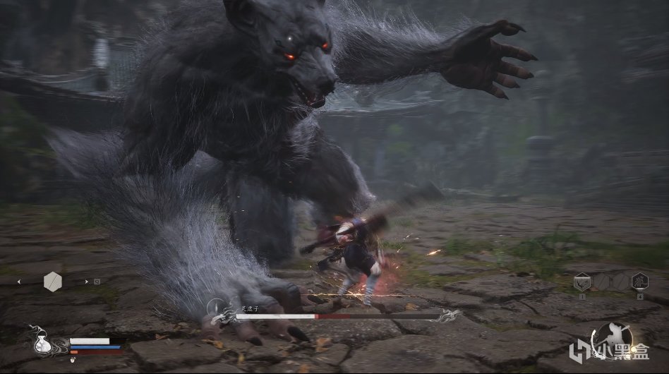 通常情況下,狼王靈虛子的進攻方式爲大開大合,舉起左右兩隻白毛巨爪向角色重砸而去,威力巨大,損血甚多。