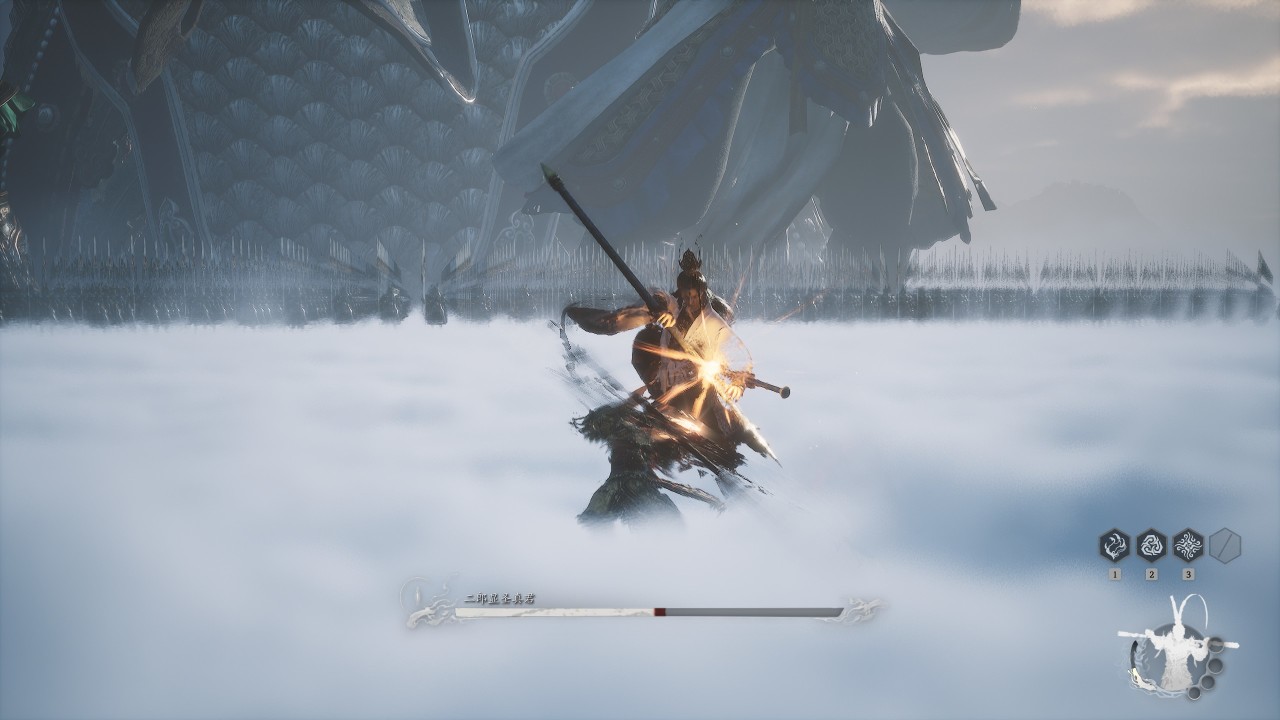 遊戲裏面第一個BOSS,比較好打(我死了3次左右),就是機動性很強,火屬性很高,但身板很脆,死亡後爲玩家解鎖變身廣智的能力