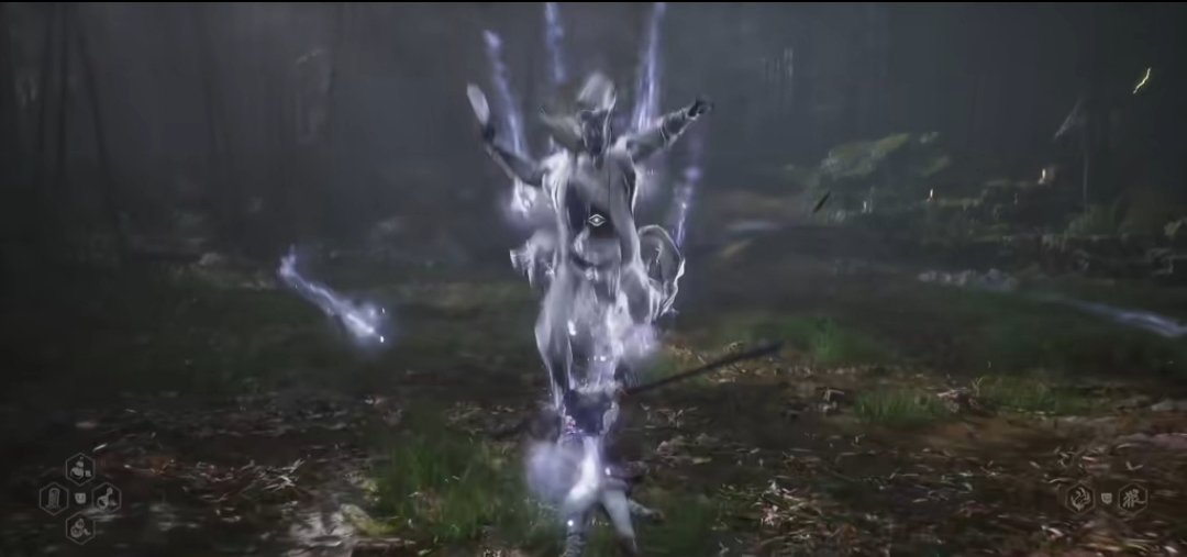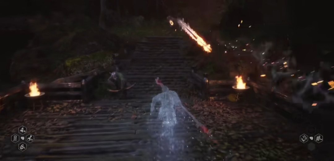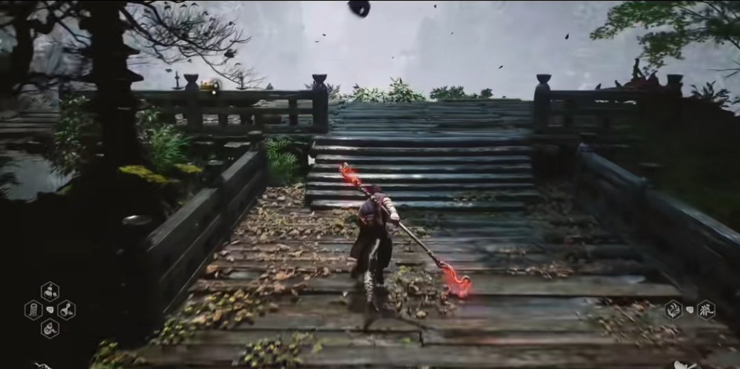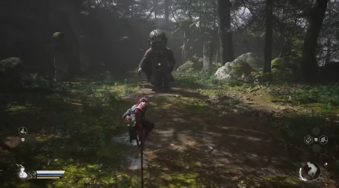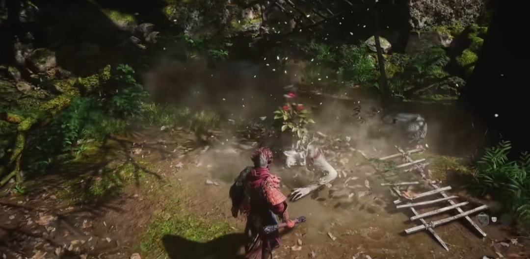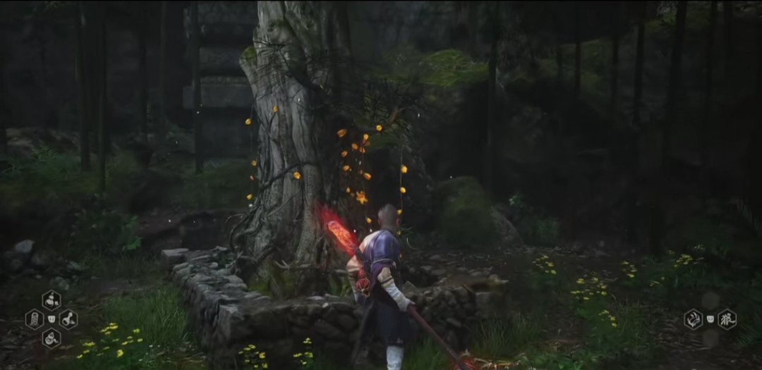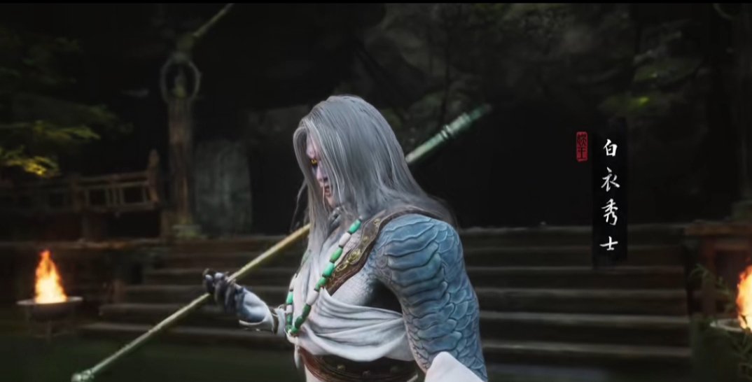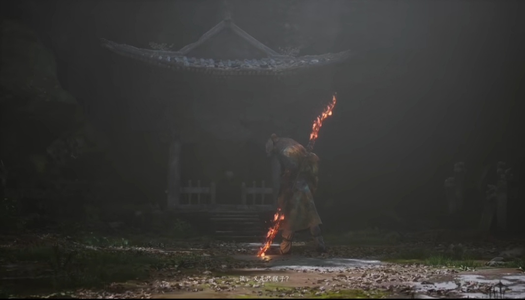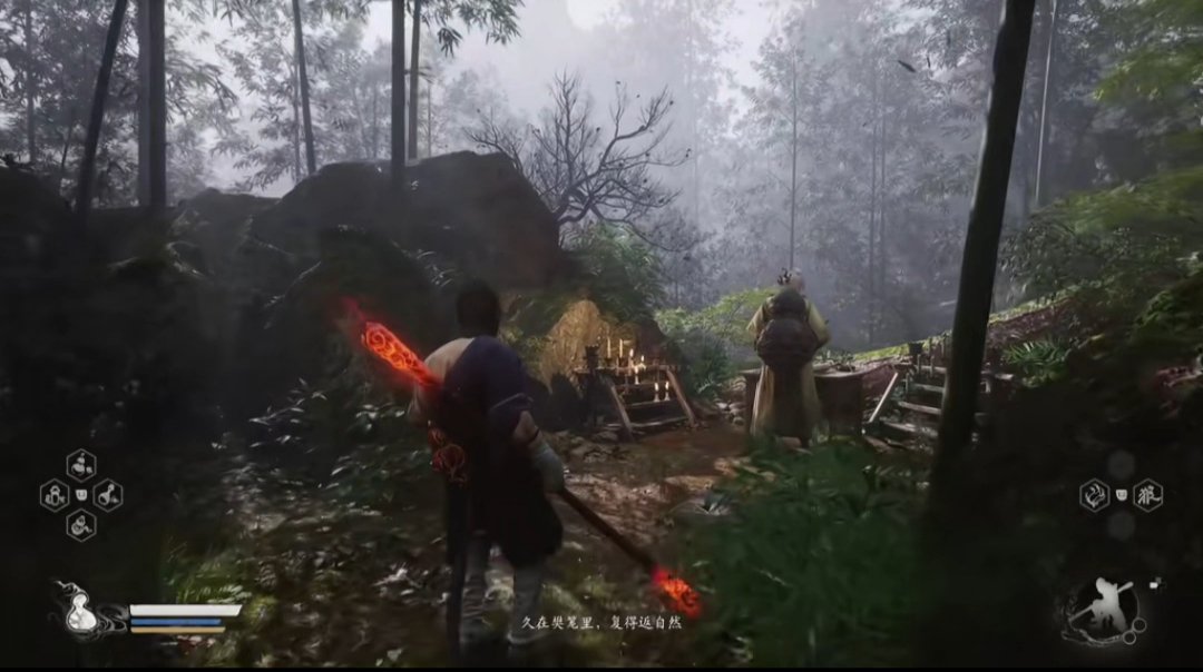 继续穿越树林,找到石塔旁的人参精,前进过一会广谋BOSS出现,打败后敲响第二口钟。随后前进到白雾泽篝火旁,篝火对面可以拿到升级葫芦的材料,珞珈香藤。往前走则可以触发NPC申猴的剧情,随后触发白衣修士的boss战斗,打完白衣修士之后,我们往他的左边走,可以敲响第三口钟,第三口钟的敲响将带你进入隐藏关卡——旧观音禅院。