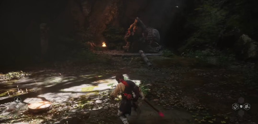 游戏开始,从出生地出发,即有一个宝箱开启它获得碎金片与棉纱,随后,沿山路前行,首个篝火出现。以此为起点继续前进,就是第一章的首位BOSS——牯护院。打败他,攀至山顶,这里隐藏着第一个收集要素——蒲团,而第一章中共有三处这样的蒲团
