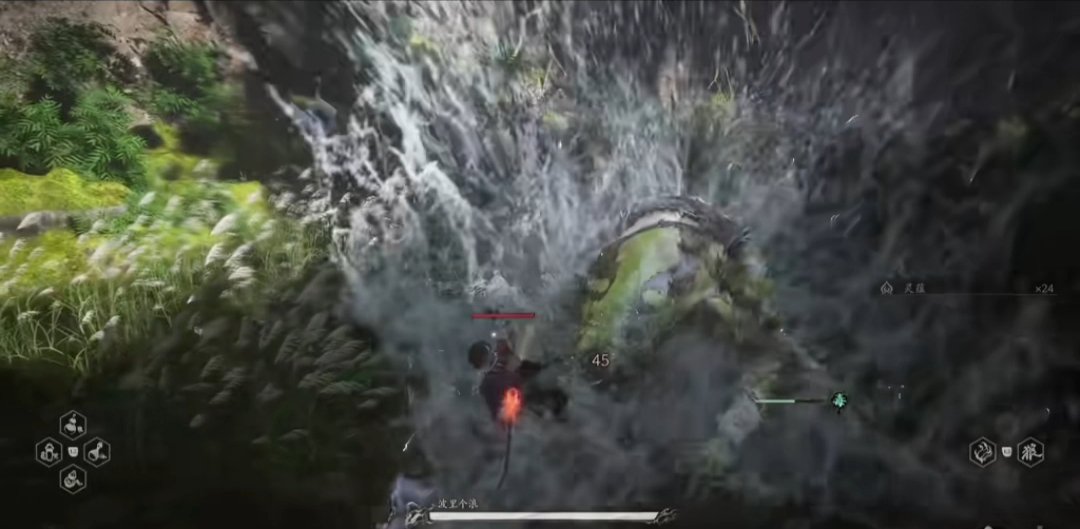 接下来继续前进,会来到第三个篝火地图翠竹林,走下楼梯,在左边的山洞里面可以碰到NPC小马哥以及第二个蒲团。从小马哥这边出发,爬到半山腰的亭子里,则可以开启宝箱获得各种丹药。继续攀登,到达蛇颈篝火旁,葫芦仙人会指引你过桥,还有在池塘边有个波里个浪头目,顺手宰了。