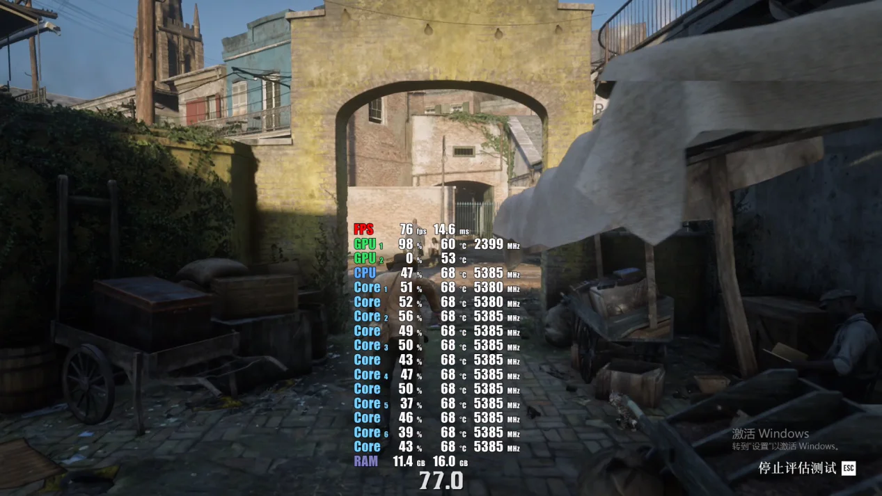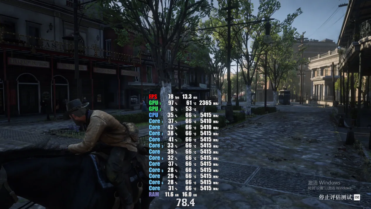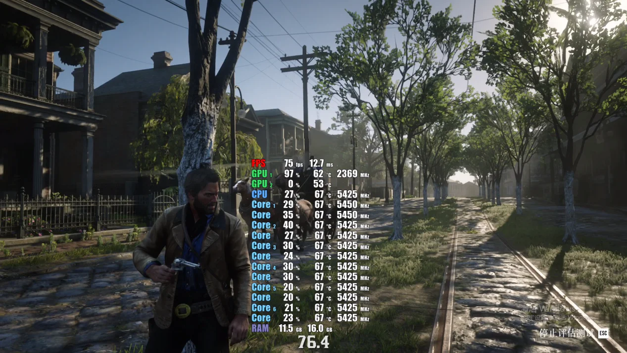 荒野大鏢客2中,預設最高畫質下平均幀能跑到76幀。