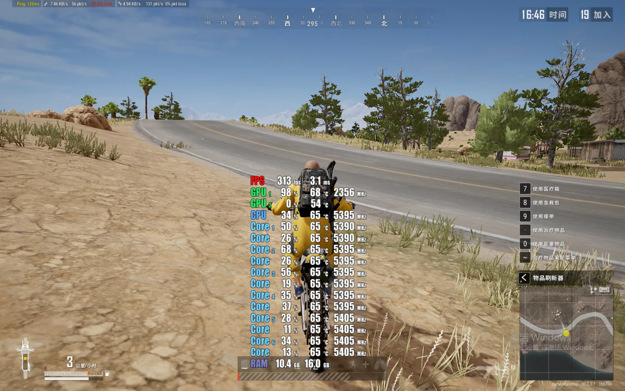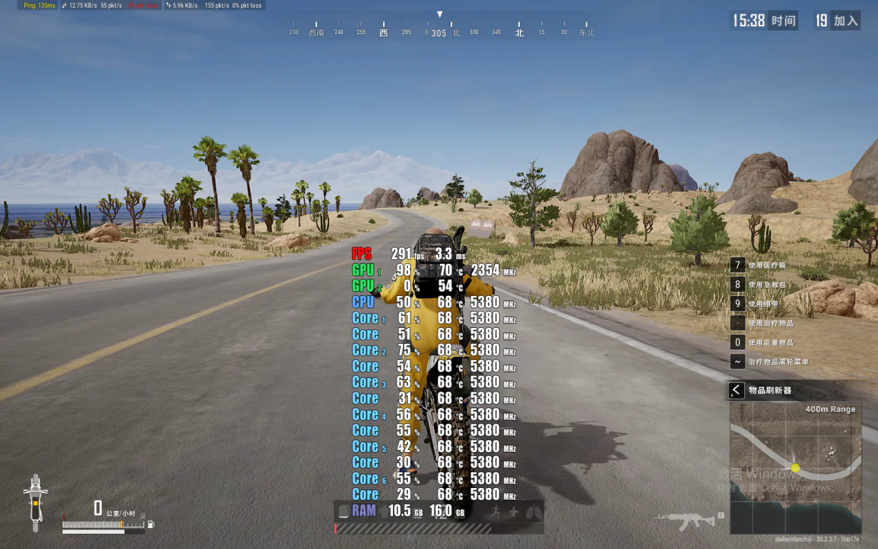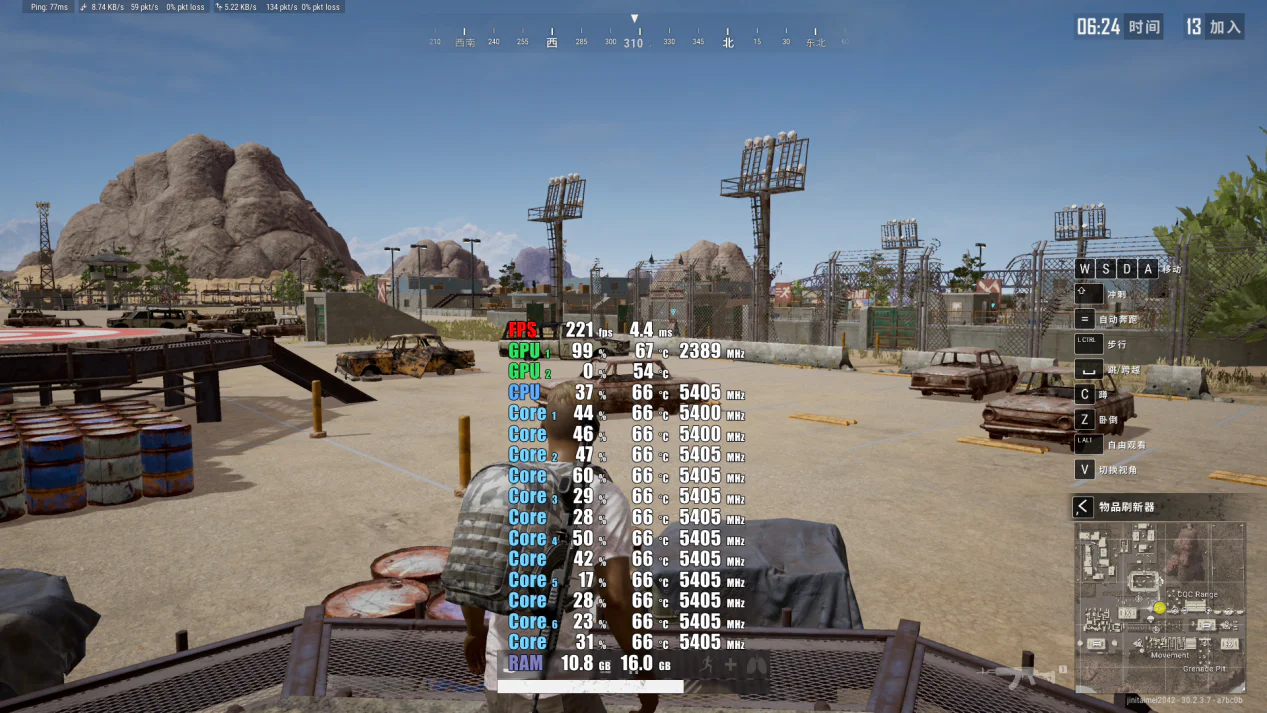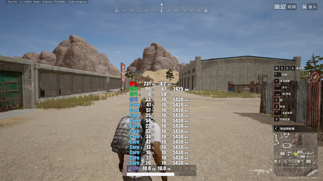 另外一款FPS遊戲。絕地求生的表現就沒有前面兩款這麼高幀率了,我們測試了訓練場三超高特效幀率基本在200左右。