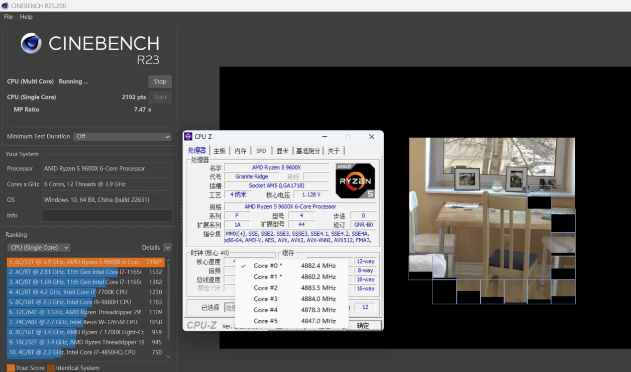 這有沒有可能是一個更加智能的調度機制呢?或者我們後續測試一下讓一些理論測試軟件和遊戲一樣,跑到最高頻率的時候,這顆R5 9600X的理論跑分會不會更加的誇張呢。