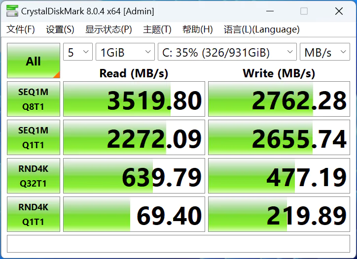 總體跑分150萬左右,其中CPU75萬分,顯卡41萬,內存和硬盤分別是14和20萬。