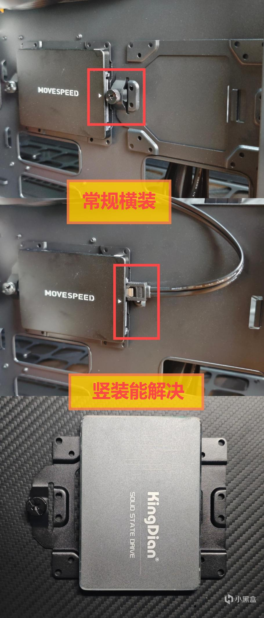 實際安裝後發現2.5寸安裝常規的橫裝思路,接口會跟第二盤位衝突。