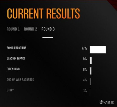 果不其然,在第三輪投票的開始,《索尼克》的票數就達到了匪夷所思的77%,遠遠地甩開了《原神》。