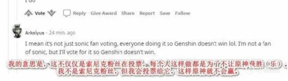 如此不對勁的情況引來了《索尼克》玩家的質疑,考慮到上兩屆TGA,《原神》在玩家之聲的第一輪就草草出局,不少《索尼克》玩家認爲《原神》賄賂了主辦方,利用水友刷票數。