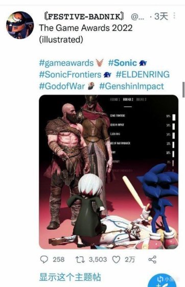 不僅是《艾爾登法環》和《戰神:諸神黃昏》在GOTY上的巔峯對決,還有《原神》和《索尼克》在“玩家之聲”這一獎項上的對壘。