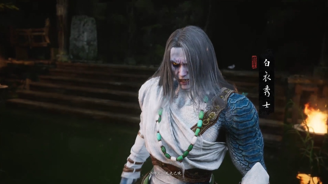 白衣秀士坐鎮白霧澤,是一隻蛇妖,戰鬥有兩個形態,擊敗後可以煉製蛇棍。