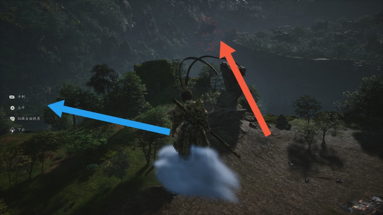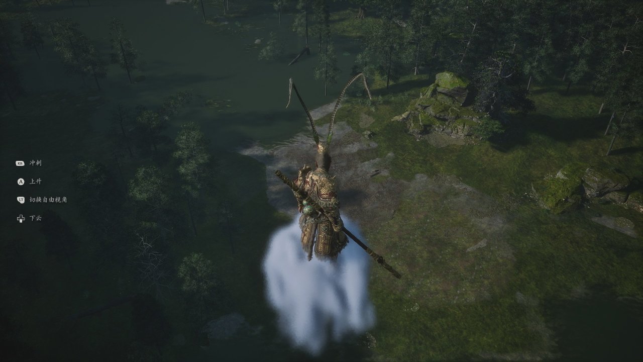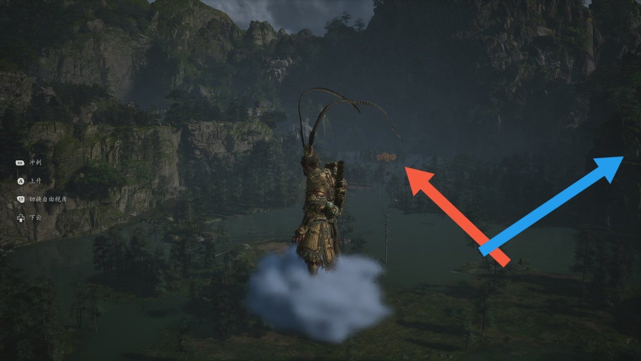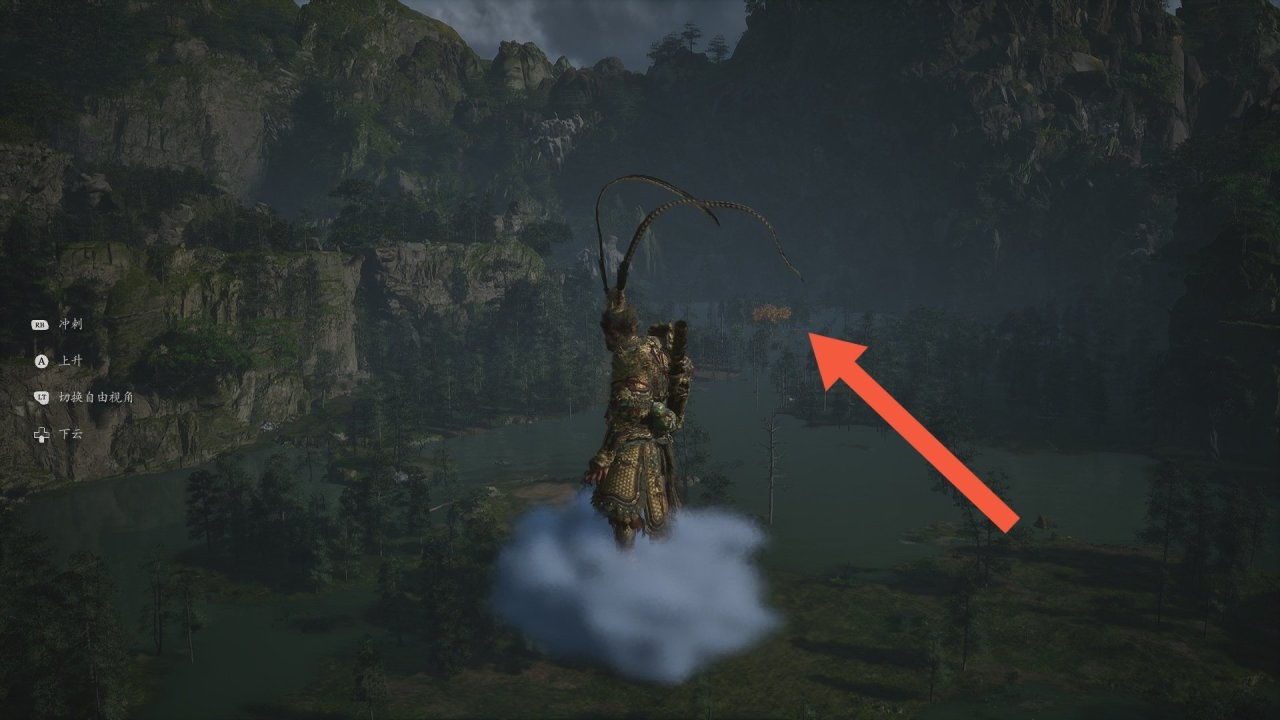 多仔細探索,很容易就能找到圖中的位置,飛向有水的地方即可。進去後觸發劇情獲得如意金箍棒!