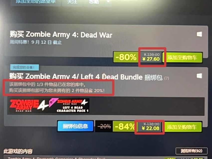 价格僵尸部队4有求生之路1的买捆绑包,只需要20多块就能买到,三部曲不用说了9.9直接入