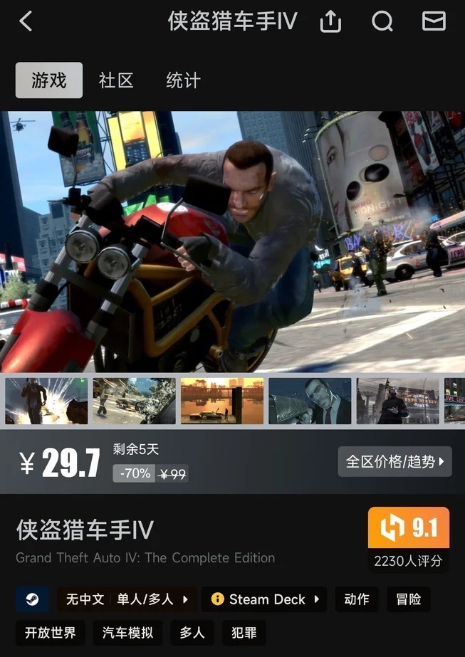 gta4可以值得一玩,当单机玩,去b站下个汉化补丁包和画质补丁,和gta5基本55开,29.7一个本体➕2个dlc