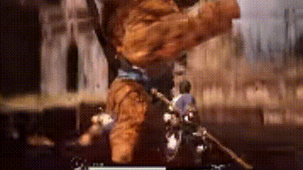 戳棍:遠程攻擊,收棍蓄勢,向前延伸棍影,一擊必中。蓄力期間雖固定身形,但棍勢加成讓攻擊距離與威力倍增。“回頭望月”切手技,非常適合打難近身的大型怪物,對遊戲後期越來越多的霸體且高頻出手怪物作用明顯。此外,戳棍衝擊力高,容易打出硬值。